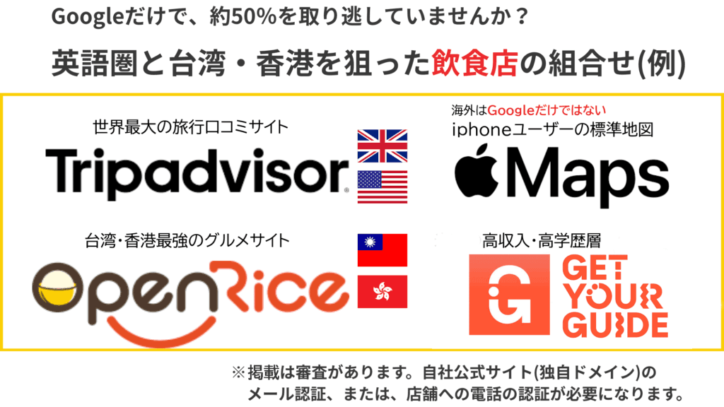 すでにtripadvisor等に登録済みでも、住所や店名だけでは効果は限定的です。